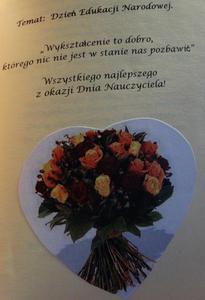 Uczniowie dwóch szkół „połączyli siły” – złożyli swoim Kochanym Nauczycielom, a także wszystkim Pracownikom serdeczne życzenia, zaprezentowali ciekawą prezentację „ z życia szkoły”, wręczyli symboliczne kwiaty i laurki, wyśpiewali niezapomniany koncert życzeń.